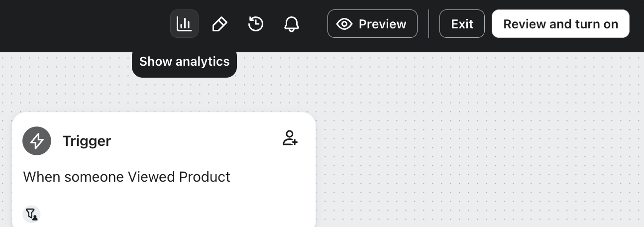 - Klicke im Builder eines bestimmten Flows in der Kopfzeile auf die Schaltfläche Auswertungen anzeigen.