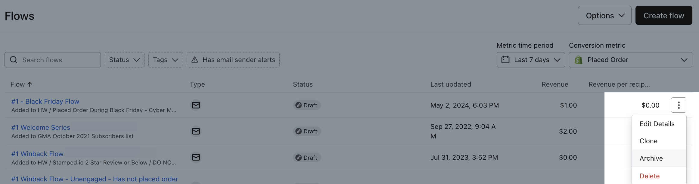 Lerne, wie du Klaviyo Flow, der nicht mehr verwendet wird, archivieren oder löschen kannst.