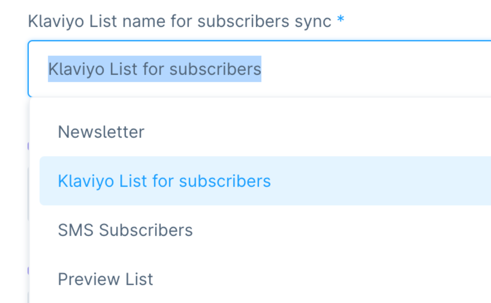 - Als Nächstes wählst du eine Klaviyo Liste aus dem Dropdown-Menü für Profile, die sich über ein Shopware-Formular angemeldet haben, aus.