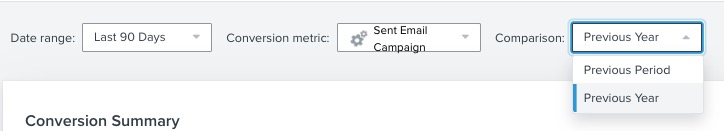 Im folgenden Beispiel ist der Datumsbereich die letzten 90 Tage. Wenn du die Option " Vorjahr" wählst, werden deine Daten mit den gleichen 90 Tagen im Vorjahr verglichen. Wenn du den vorherigen Zeitraum auswählst, werden deine Daten mit demselben vorherigen Datumsbereich oder, in diesem Fall, mit den 90 Tagen vor der von uns gewählten Datenwut verglichen.