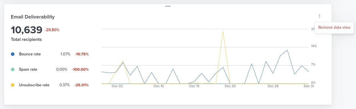 Lerne, wie du ein Dashboard erstellst, um alle E-Mail-, SMS-Flow- und Zustellbarkeitstrends zu visualisieren und die Gesundheit deines Unternehmens zu verstehen. Dashboard (auch als Übersichts-Dashboard bezeichnet) bietet einen umfassenden, anpassbaren Bericht, der deinen Erfolg für jeden Marketingkanal detailliert darstellt.