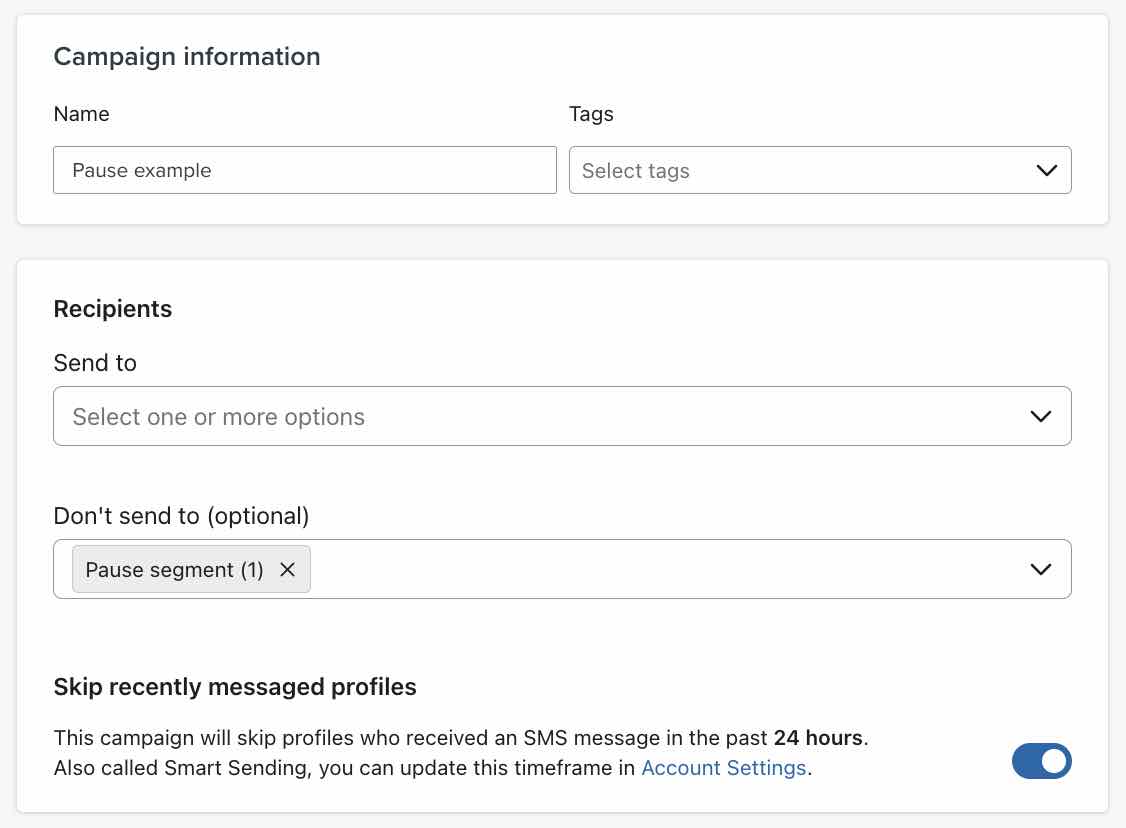 Hier erfährst du, wie du es Kunden ermöglichen kannst, den Empfang von SMS-Kampagnen zu unterbrechen, ohne sich komplett von SMS abzumelden.