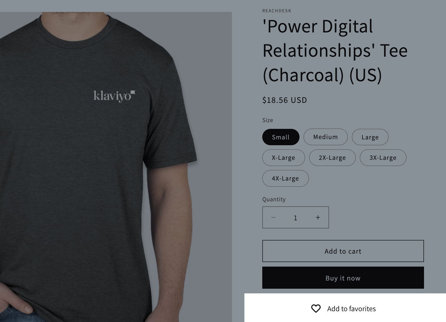 Favoriten-Buttons ermöglichen es den Kunden, Produkte, die sie interessieren, zu speichern. Die favorisierten Artikel eines Käufers werden in der Schublade des Klaviyo Customer Hub angezeigt und können in Flow verwendet werden, um die Conversion zu steigern.