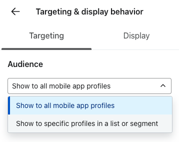 Die Registerkarte Targeting & Verhalten des Formular-Editors enthält die Einstellungen Zielgruppe, Timing, Auslösen und Anzeigefrequenz. Mit diesen Einstellungen kannst du festlegen, wer das In-App-Formular sehen kann, in welchen Fällen, wann und wie häufig. Lies mehr über die Einstellung des Zielverhaltens & für deine In-App-Formulare in der Anleitung zum Erstellen eines In-App-Formulars.