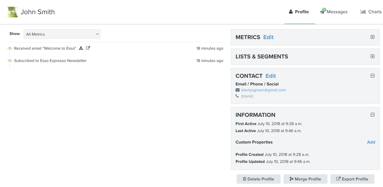 Das Folgende ist zum Beispiel ein Standard Profil Laden in Klaviyo.