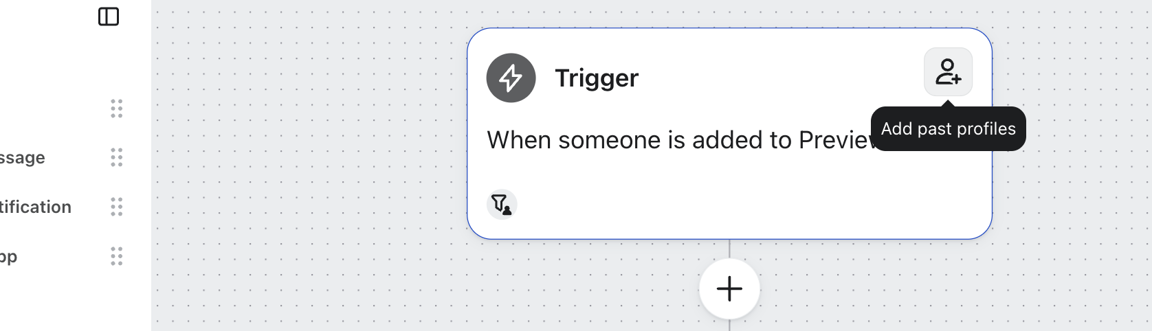- Füge vergangene Profile zu deinem Fluss hinzu, wenn du sie für eine bestehende Liste oder ein Segment erstellt hast.