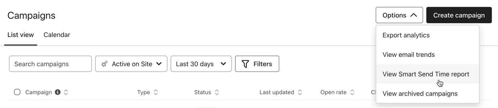 - Klicke auf Smarter Versandzeitpunkt-Bericht anzeigen.