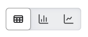 In der oberen rechten Ecke der Tabelle siehst du 3 Optionen für die Anzeige deiner Daten :