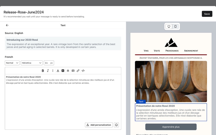 Vergewissere dich, dass deine E-Mail in der Originalsprache vollständig bearbeitet und versandfertig ist, bevor du sie übersetzst. Andernfalls musst du den Übersetzungsprozess erneut durchlaufen, wenn du Änderungen am Originalinhalt vornimmst.