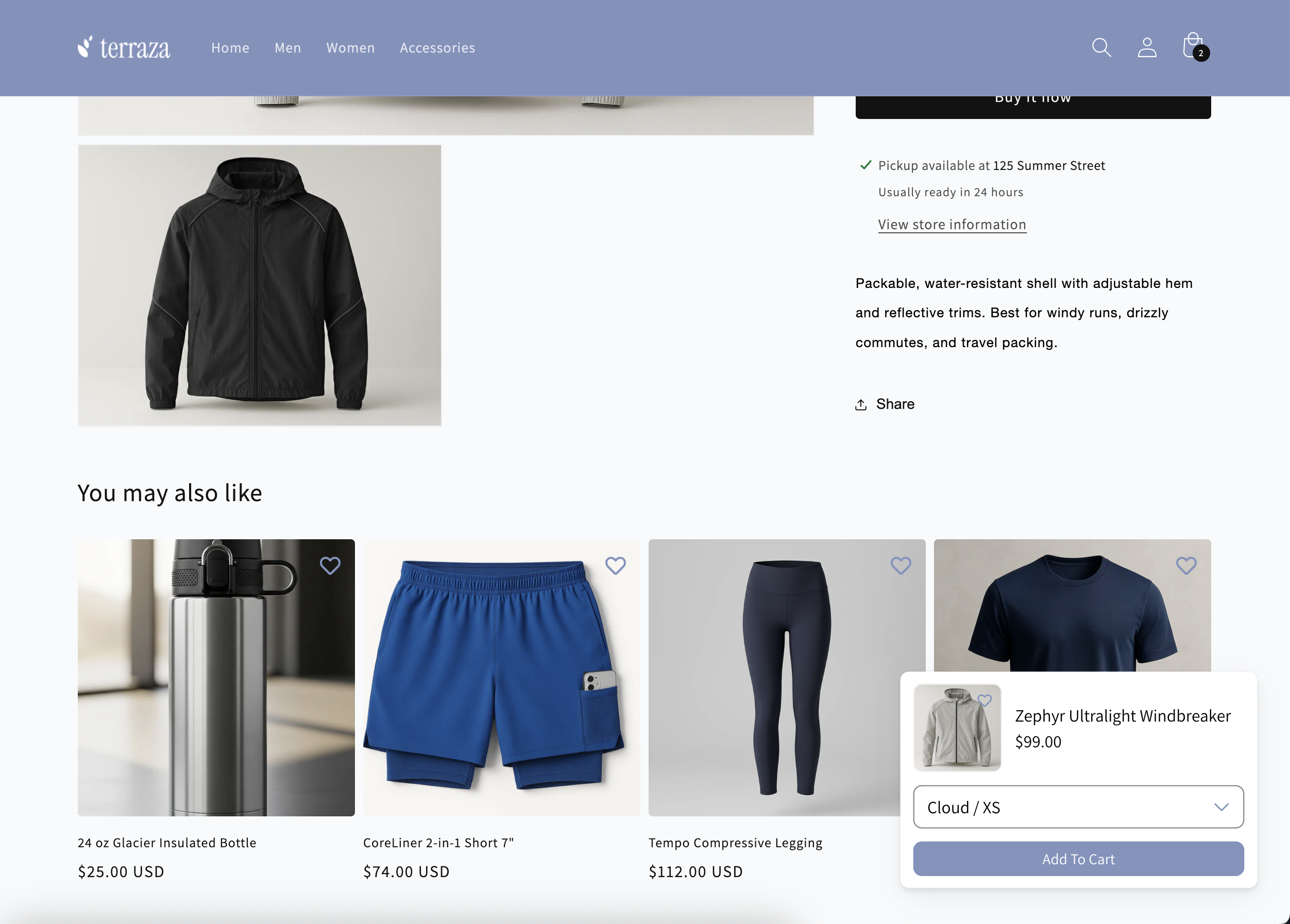 Erfahre, wie du auf deinen Produktdetailseiten ein interaktives Widget In den Warenkorb anzeigst. Das anpassbare Widget regt Kund*innen dazu an, einen Kauf zu tätigen oder ein Produkt für später zu speichern, wenn sie unter den oberen Rand der Produktdetailseite gescrollt haben und die herkömmliche Schaltfläche Zum Warenkorb hinzufügen nicht mehr zu sehen ist.