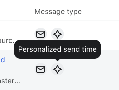 - Mit Personalized Send Time versendete Kampagnen sind in der Spalte Kampagnentyp mit einem ✨ (Funkel)-Symbol gekennzeichnet.
