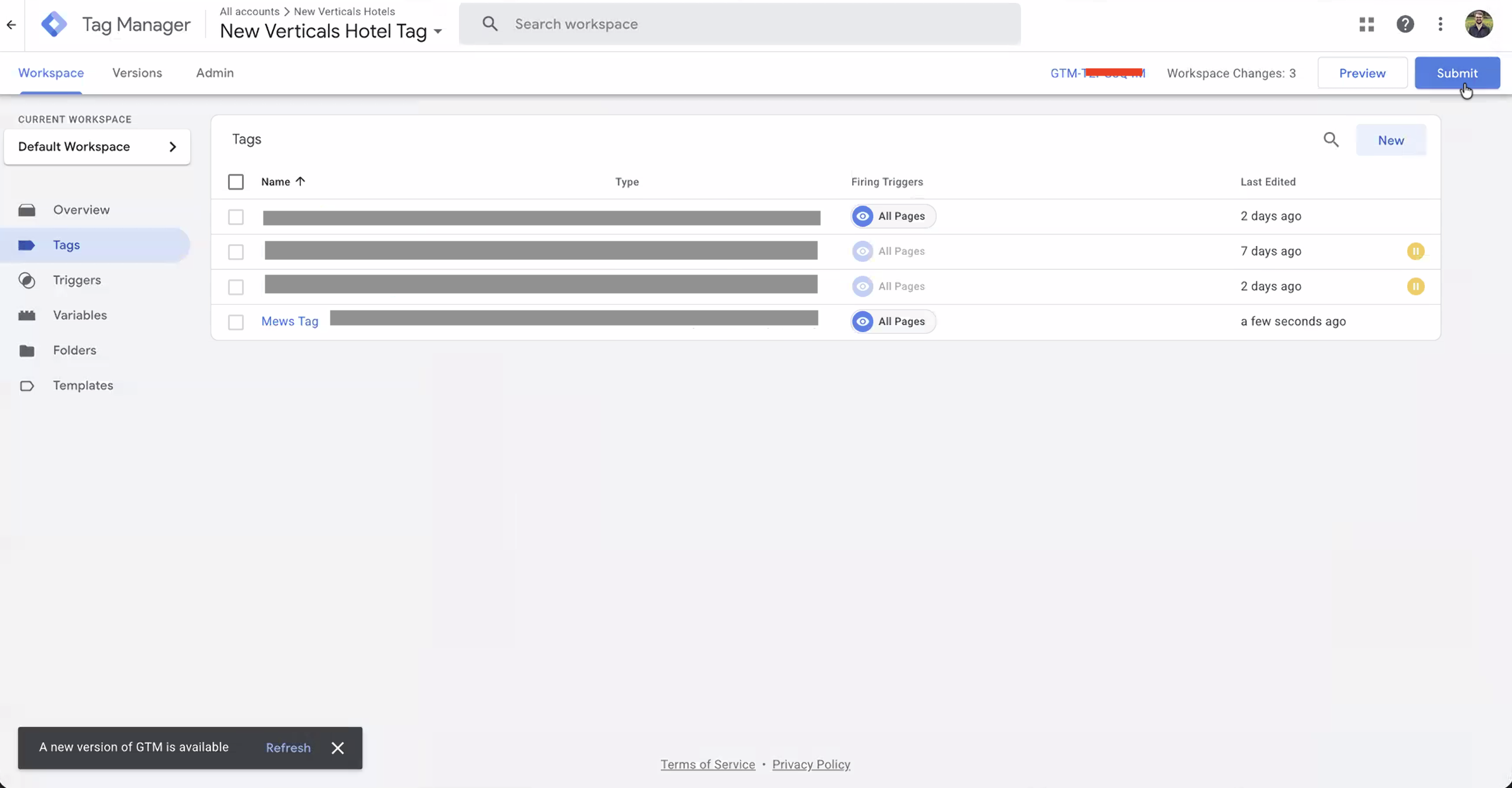 Klicke auf die blaue Schaltfläche „Submit“ in der oberen rechten Ecke von GTM.