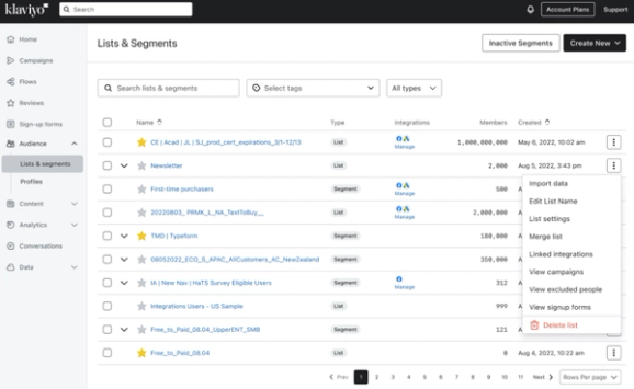 - In Klaviyo, select Lists & Segments in the left hand navigation.