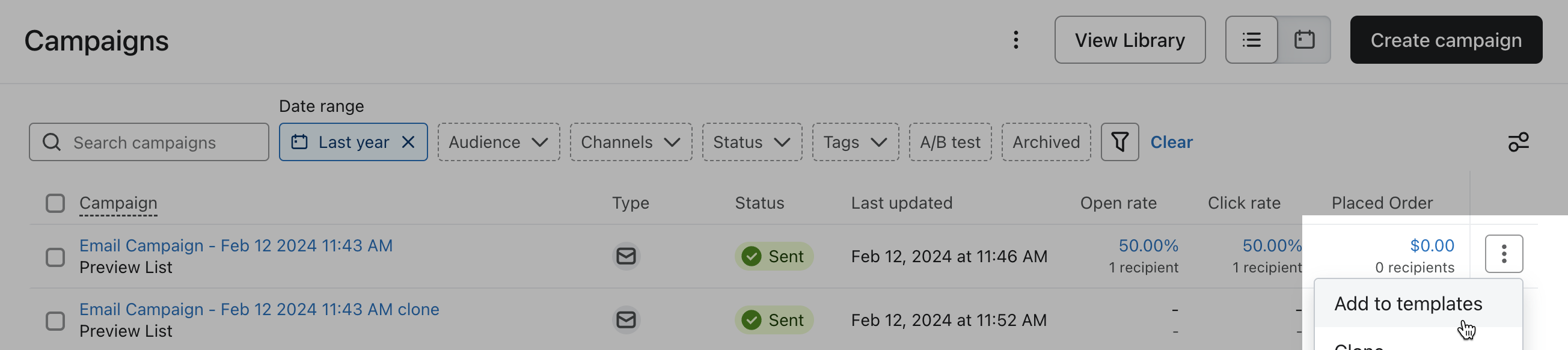 Learn how to save an email template to reuse in the future. Saving email templates is an easy way to cut down time building your campaigns or flow emails, as saved templates can be used as a starting point for future emails. From Content > Templates, you can build out a template directly or edit saved email templates.