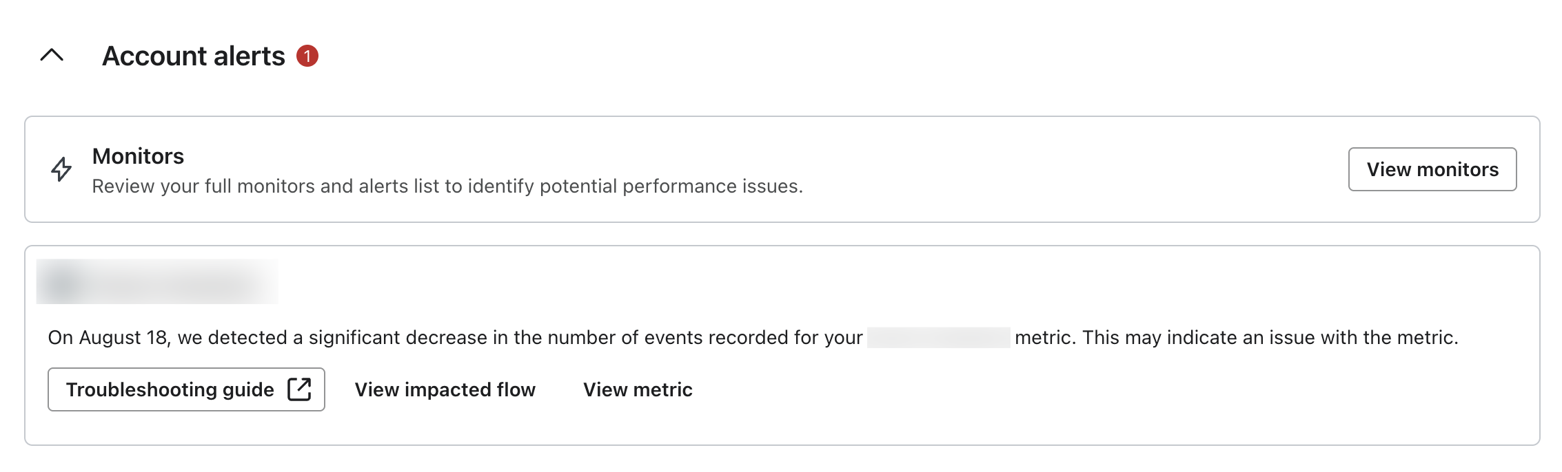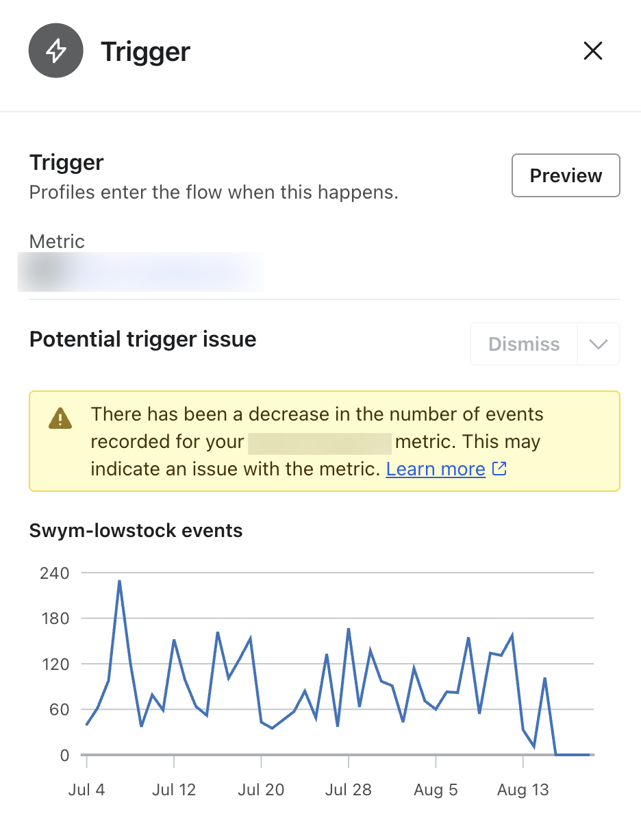 Learn how Klaviyo monitors and alerts you of unusual activity with ecommerce metrics that are used to trigger flows in your Klaviyo account. When a metric has a sudden drop in activity, you will be alerted so you can troubleshoot the potential issue. This type of monitoring is also known as anomaly detection.