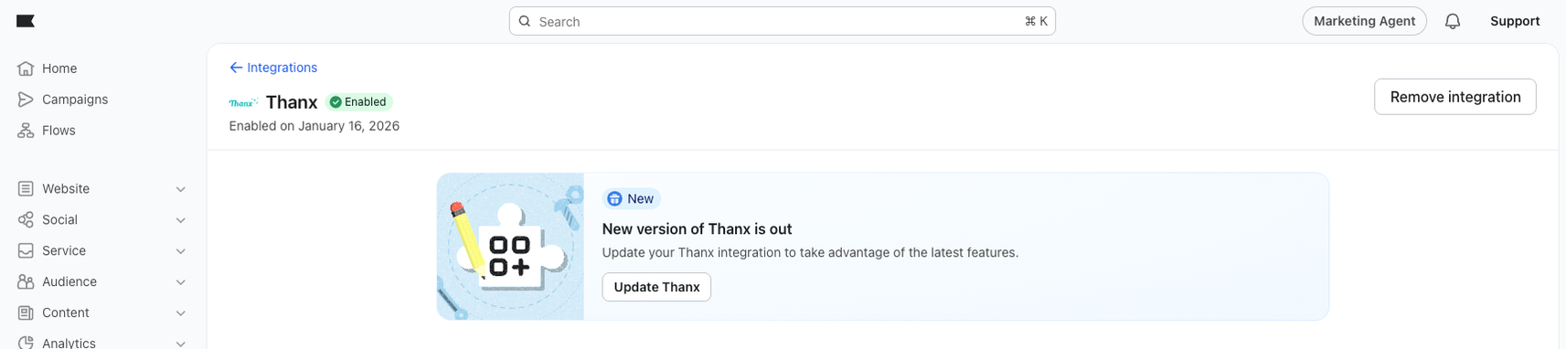 - Check the box to sync Thanx email subscribers to a Klaviyo list, and then select a list from the dropdown.