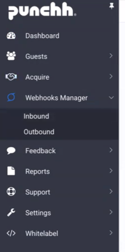 - In a new tab, log in to your PAR Punchh admin. Then, navigate to Punchh > Webhooks Manager > Outbound.