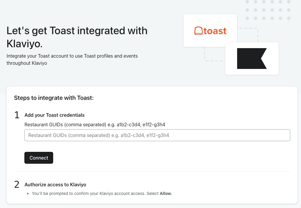 Add the Toast integration in Klaviyo