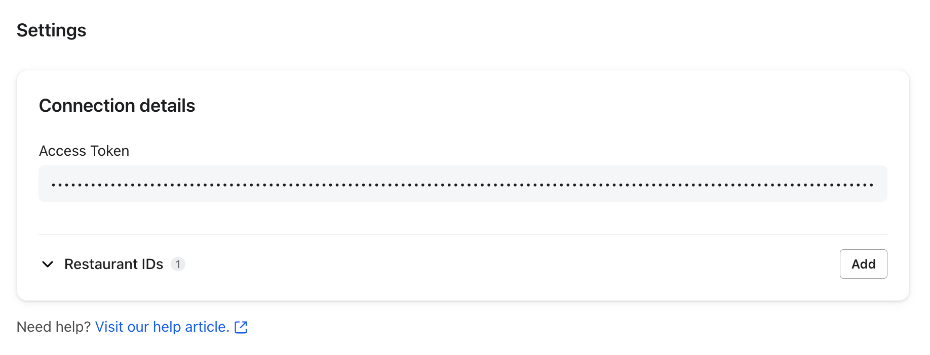 If you expand your business or add new locations to your Toast account after your initial integration, you can add these Restaurant IDs to your integration settings to ensure data flows for those specific locations.