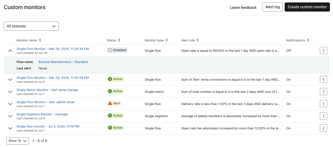 Learn about custom monitors in Klaviyo. With custom monitors, you can configure alerts to quickly identify and resolve issues around key metrics and objects in Klaviyo (i.e., segments and flows). Additionally, see our recommended use cases to quickly get set up with monitors to stay ahead of issues and discover trends.