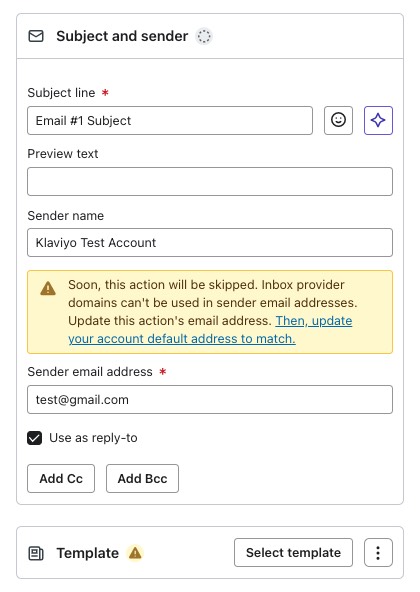 - The flow message is using an email with an inbox provider domain (@gmail.com) which isn’t a valid sender address. The sender address must be changed to an email that uses the domain of your website. This also applies to internal alerts.