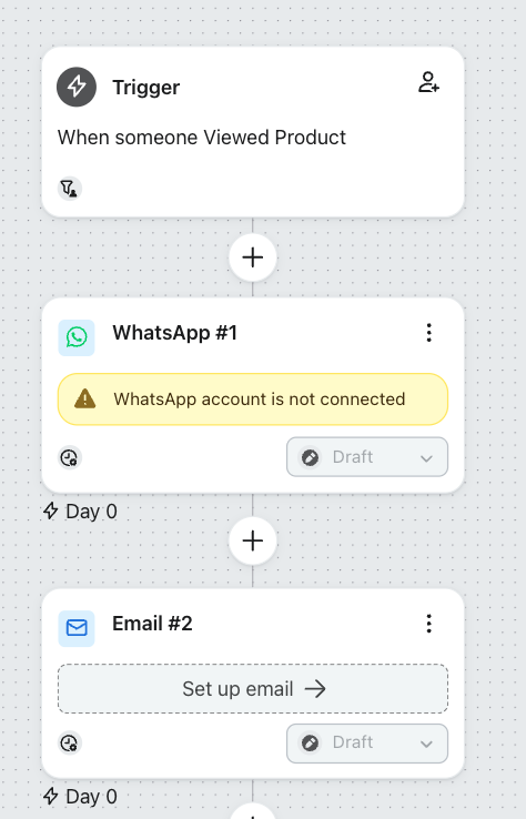 Otherwise, you can view unconfigured states and other alerts directly on the flow canvas, displayed on the card for each action. Click on the flow card to view the changes that need to be made.