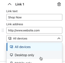 - To save space on mobile, consider selecting Desktop only for any non-essential links.