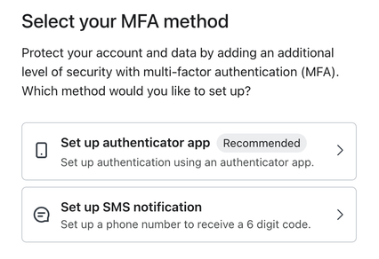 - Check that you have MFA set up through both the authenticator app and SMS.