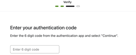 - Authentication app: enter the authorization/one-time passcode or an unused backup code.