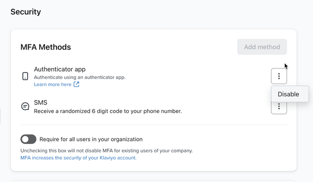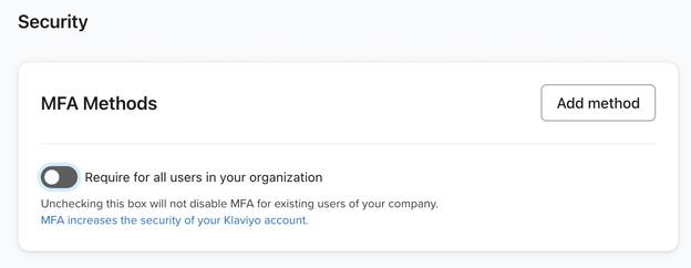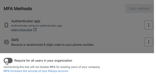 Plus, if you enable MFA for your account, you can remain logged in to Klaviyo for a longer period of time before re-entering your credentials.