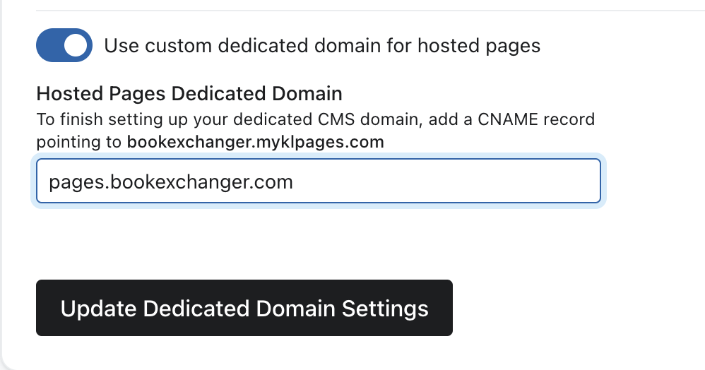 Update the dedicated domain settings for your hosted pagesUpdate the dedicated domain settings for your hosted pages