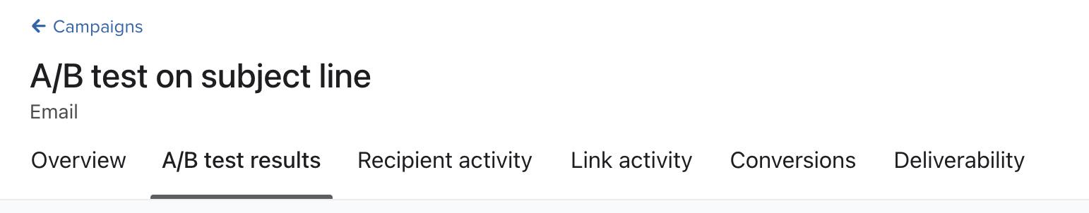 - Select the A/B test results tab of the main campaign report.