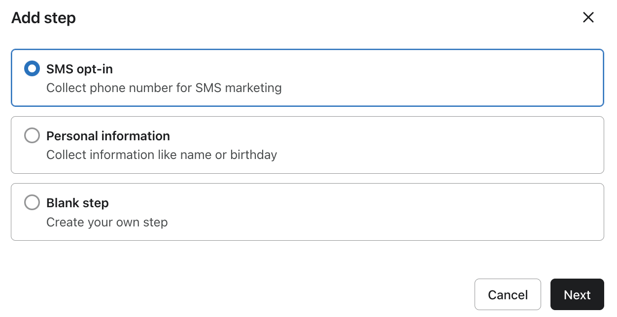 With SMS, you also have to include copy that explicitly states that by signing up, the person consents to receive SMS marketing messages from your business. This is usually done via disclosure language.
