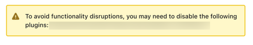 "To avoid functionality disruptions, you may need to disable the following plugins: Plugin Name(s)"