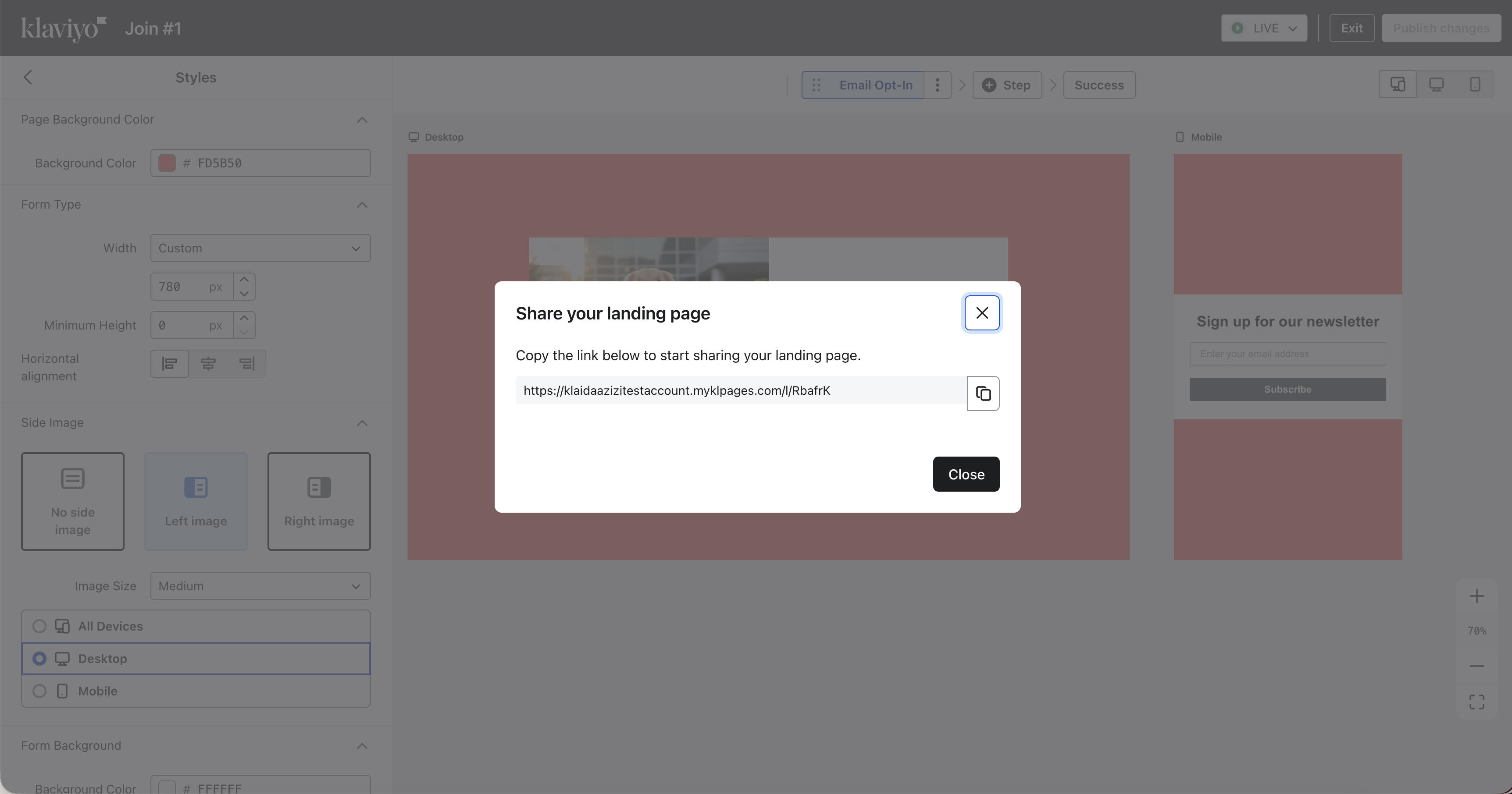 - Use the landing page URL in campaigns, flows, and ads to drive traffic.