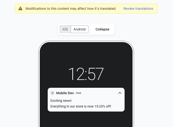 Make sure your push notification is fully edited and ready to send in your original language before translating. Otherwise, you’ll have to go through the translation process again if you make edits to the original content.