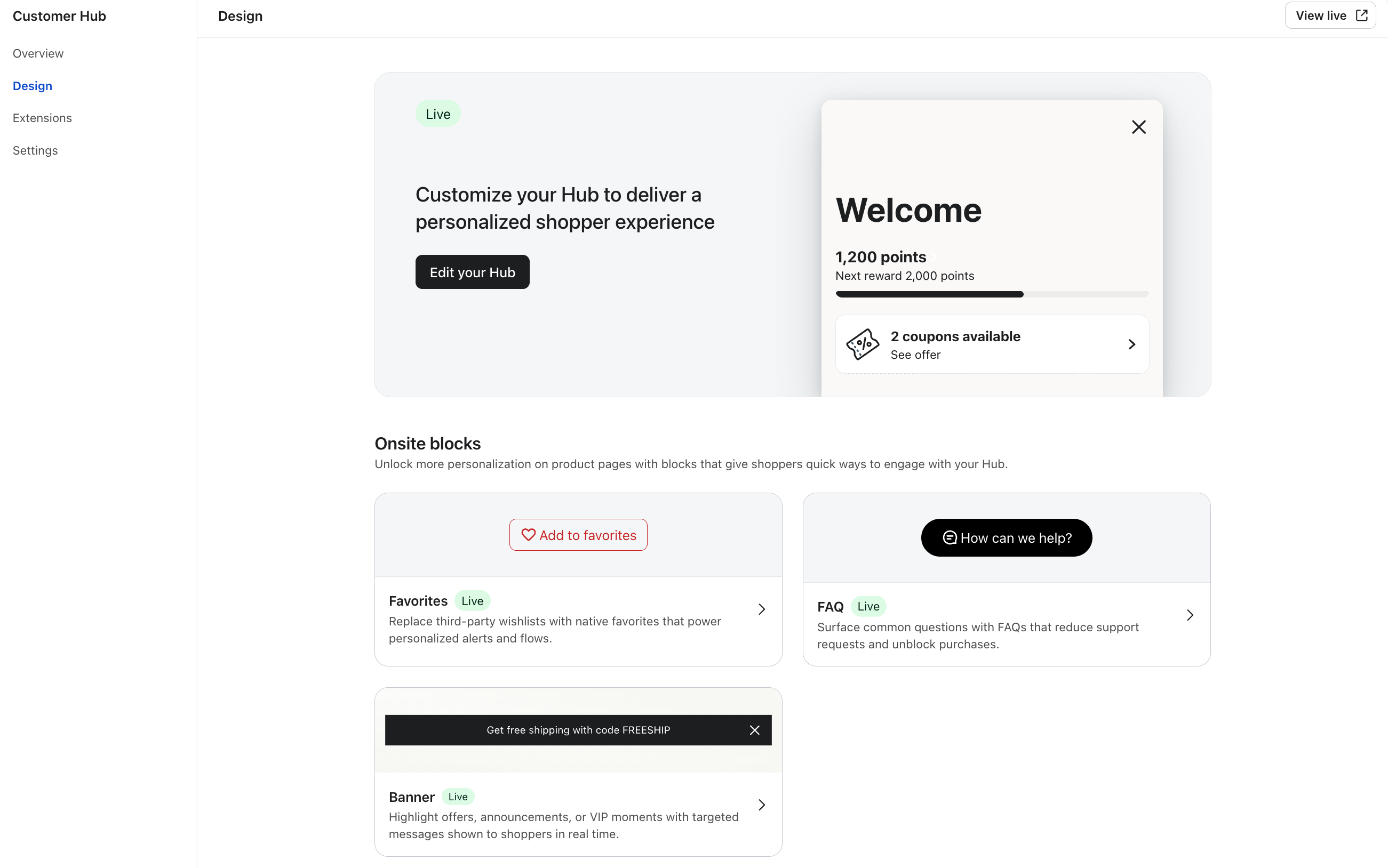 - Navigate to the Customer Hub (or Onsite) tab in your Klaviyo account.