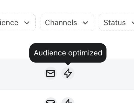 - Campaigns sent with Audience Optimization are marked with a ⚡ (lightning bolt) icon in the Campaign type column.