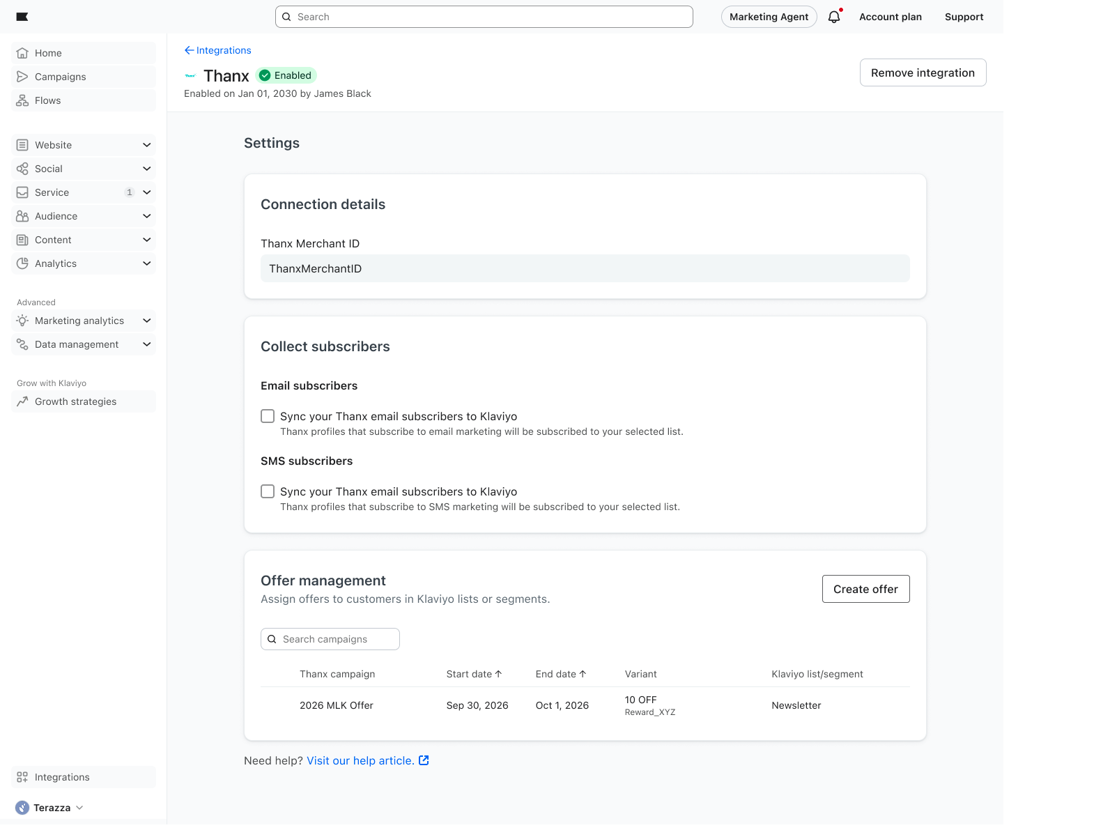 How to manage and distribute Thanx offers via Klaviyo
