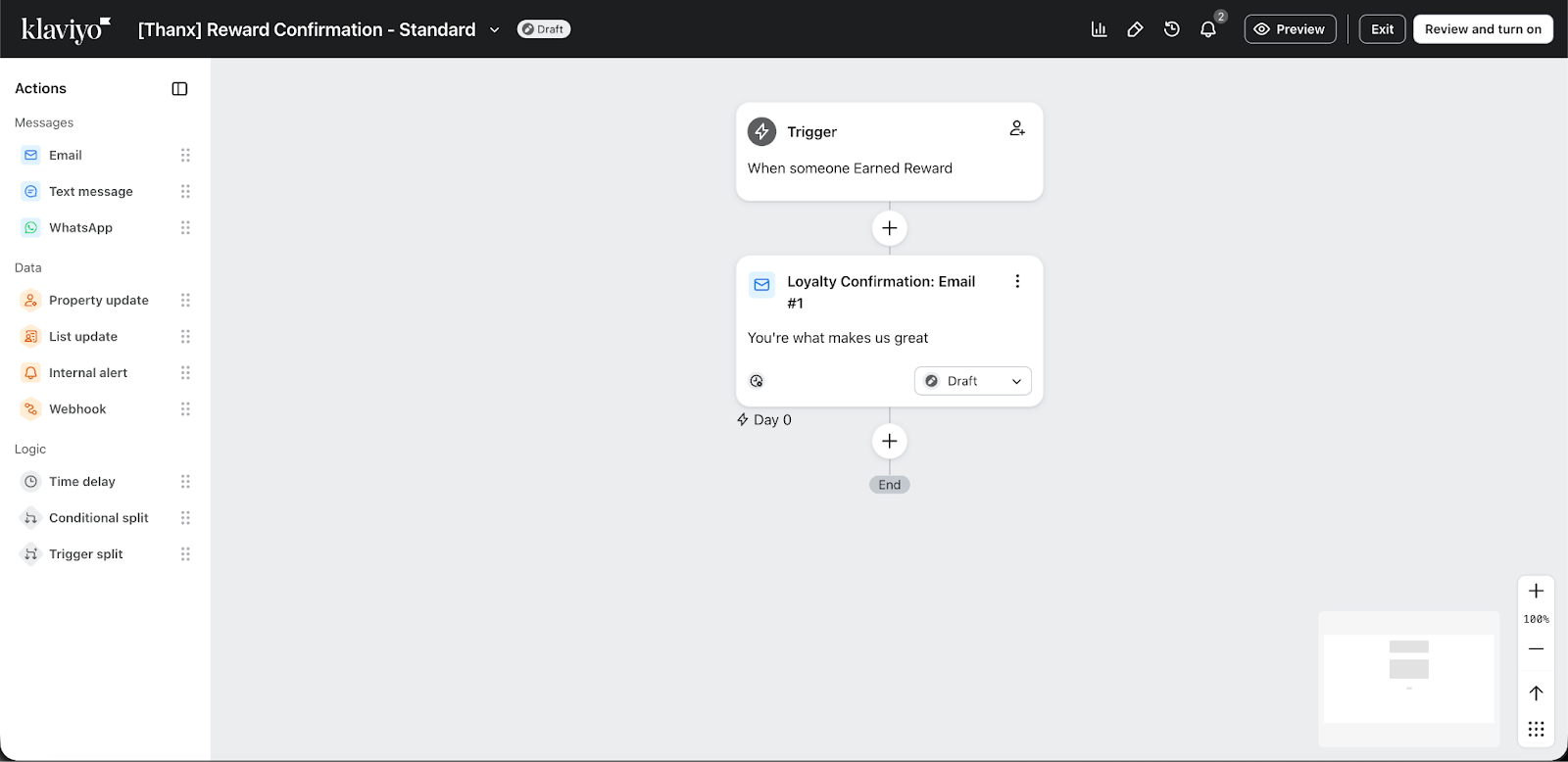 To distribute your Thanx rewards using Klaviyo, you can use the Earned Reward metric to trigger automated flows, ensuring customers receive their reward notification the moment they qualify. You can also use dynamic blocks to include reward details within your message.