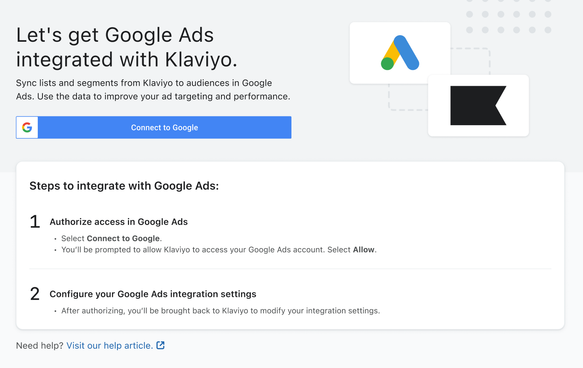 Before you integrate with Google Ads, set up your Klaviyo account and integrate with your ecommerce platform. See our guide on getting started with Klaviyo.