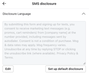- Click on the textbox that contains your disclosure language. If needed, click Edit to replace the default language with: