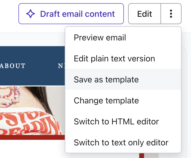 Si está trabajando con un borrador de correo electrónico de campaña o con un correo electrónico de flujo, puede cambiar la plantilla con la que está trabajando. Para cambiar a una plantilla diferente en una campaña: