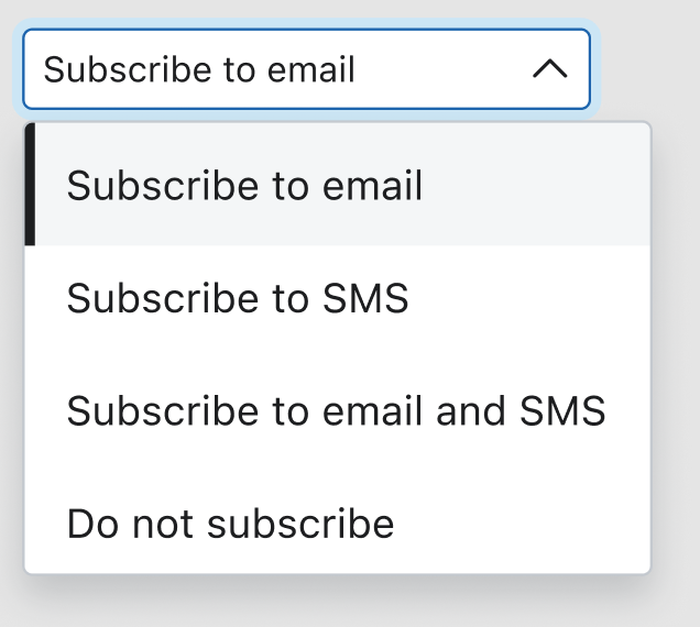 - Si eliges no suscribirte perfil, la persona se añadirá a la lista que selecciones, pero no se suscribirá a marketing, ni recibirá un mensaje de doble confirmación de registro. Si tienes una serie de bienvenida activada por consentimiento para SMS o correo electrónico, no la recibirán, pero si tu serie de bienvenida es un flujo activado por lista, la recibirán.