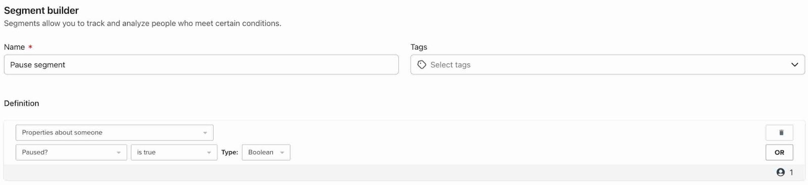 Propiedades sobre alguien > ¿Paused ? es igual a true - Haga clic en Crear segmento.