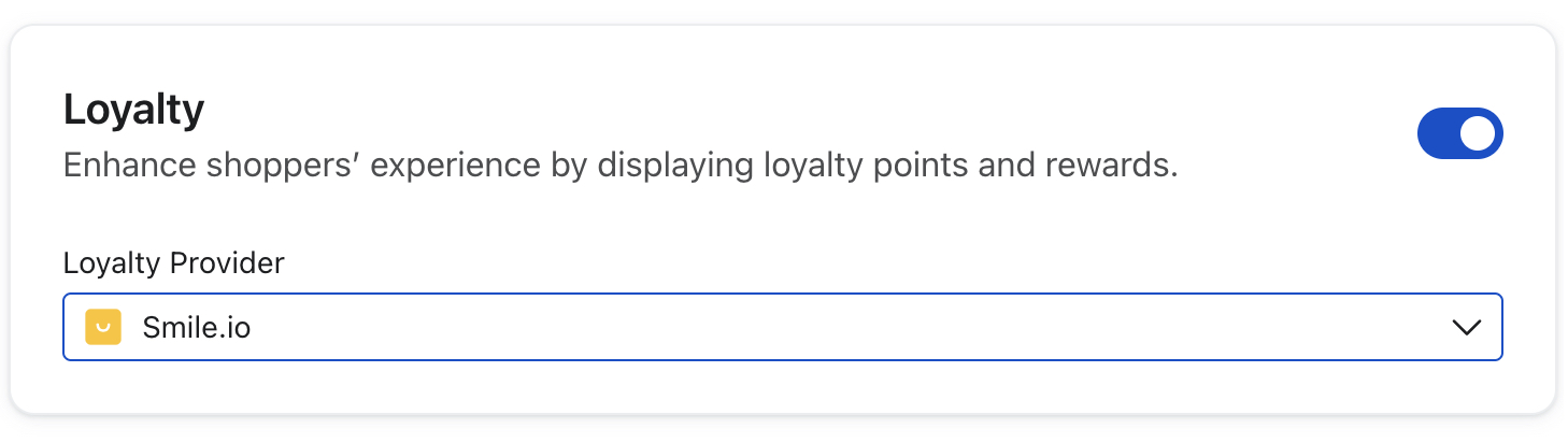 - En «Lealtad», seleccione Smile.io en el menú desplegable «Proveedor».