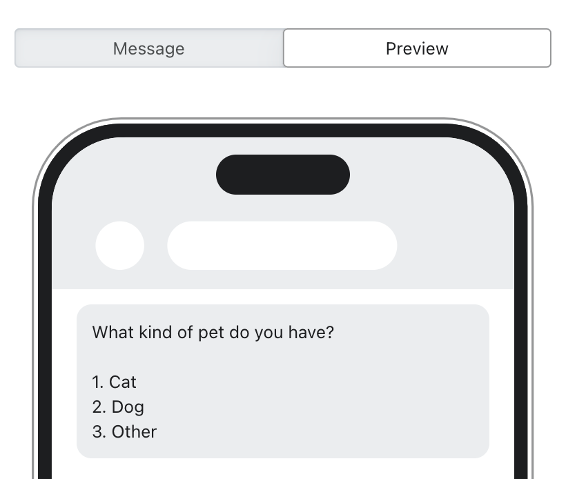 La vista previa de un mensaje individual te muestra cómo aparecerá ante el cliente: