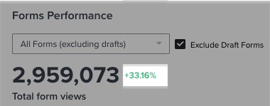 También verá el recuento total de visitas a formularios a la izquierda, junto con el cambio porcentual respecto al periodo anterior. Un cambio porcentual positivo se mostrará en texto verde, mientras que un cambio porcentual negativo se mostrará en texto rojo.