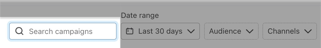 Por ejemplo, si buscas una campaña llamada "Lanzamiento de verano 2025", puedes escribir cualquier parte de este título para encontrar la(s) campaña(s) con esa palabra en el nombre.