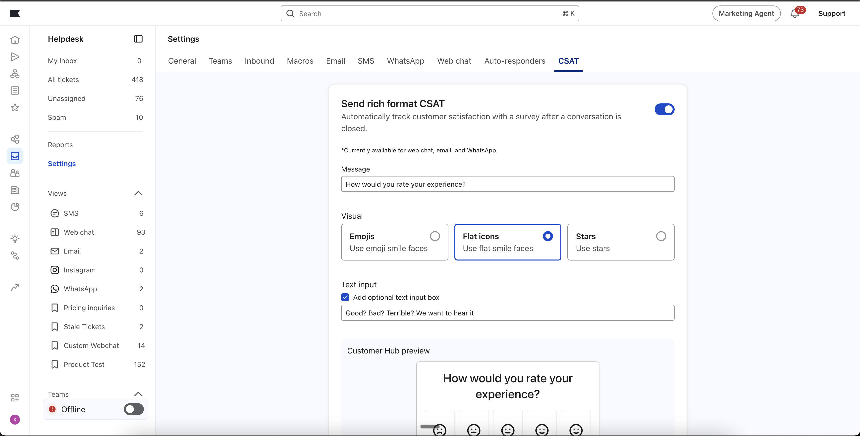 - Ve a Helpdesk ➜ Settings ➜ CSAT Survey.
